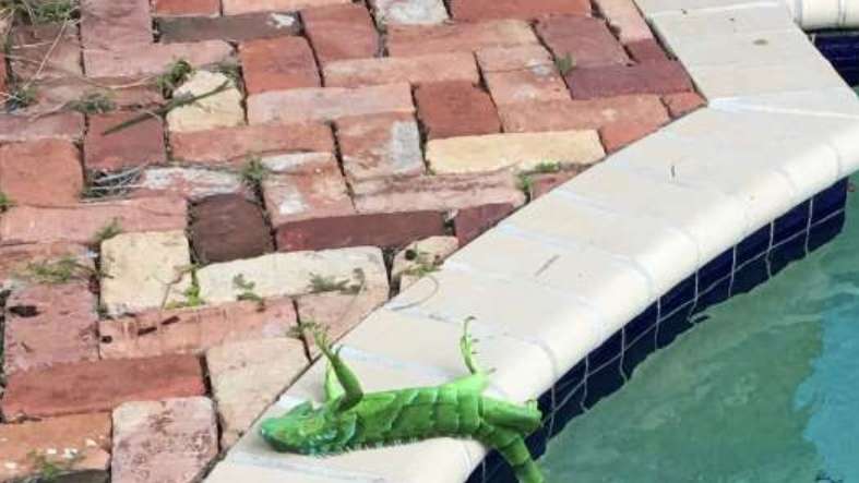 El columnista del Palm Beach Post Frank Cerabino colocó en Twitter una foto de una iguana yaciendo bocarriba junto a su piscina. WPEC-TV colocó fotos de una iguana en similar posición en un camino en el condado Palm Beach.