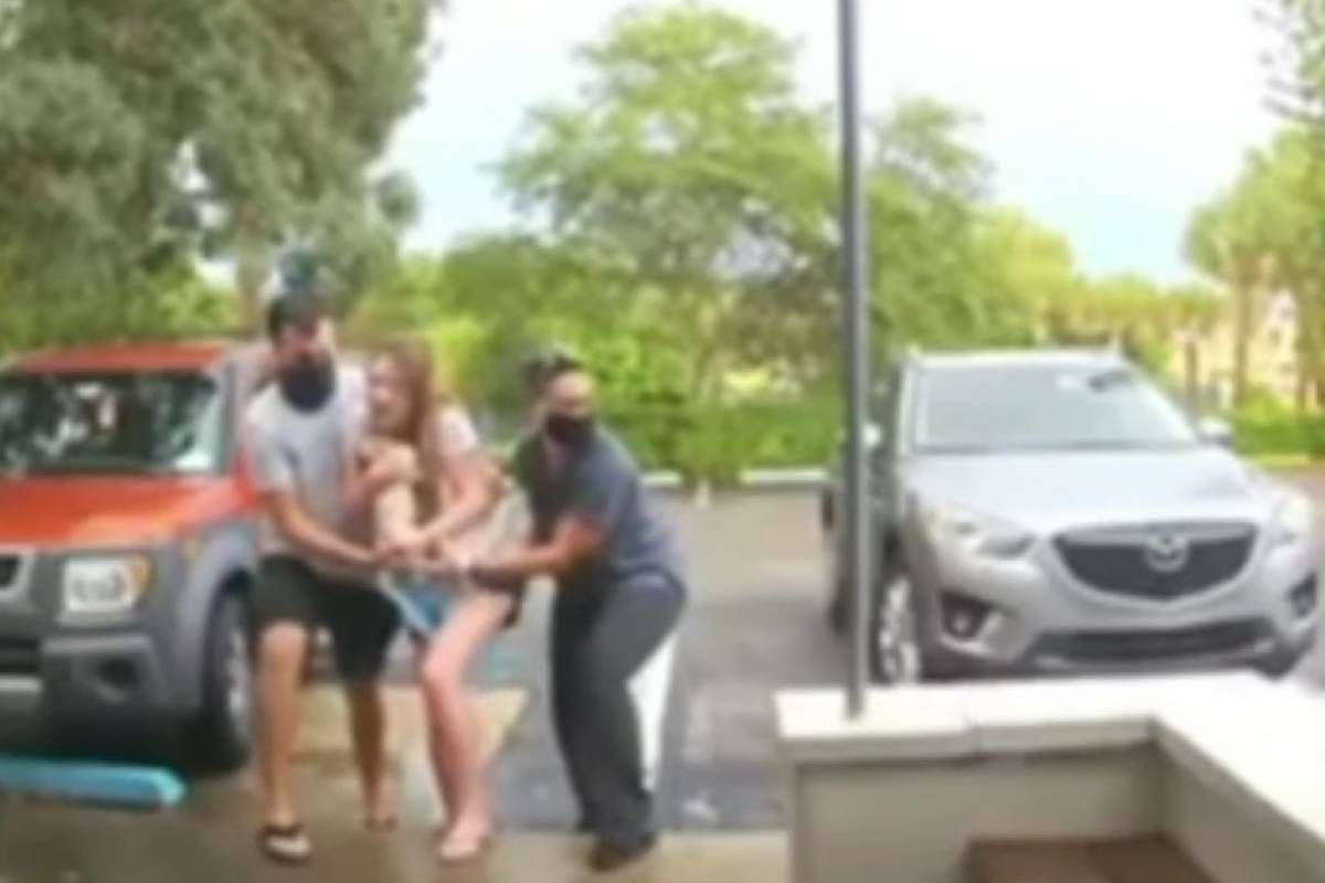 La cámara de seguridad de un centro de maternidad del estado de Florida captó el momento del nacimiento de una beba en su estacionamiento, ya que la pareja apenas pudo llegar al establecimiento y no tuvo oportunidad para ingresar, por la rapidez del proceso. La partera que los asistió llegó justo a tiempo, ya que la beba se escurrió entre las piernas de la mujer, que estaba de pie intentando seguir caminando hacia la puerta.