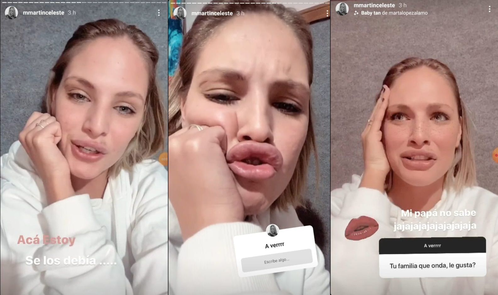 En las historias, Celeste primero dijo que recibió algunos comentarios "muy lindos" y otros "que me han agredido un poco". Y pasó a contar que se colocó en los labios ácido hialurónico. "Por Dios, no fue silicona ni botox", aclaró.