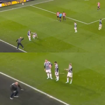 El simpatizante del Sheffield saltó al campo de juego y, señalando a Garnacho, comenzó a gritarle. La imagen sorprendió a los propios jugadores que observaban atentos como este hombre, sin agredir físicamente al futbolista, le reclamaba por sus supuestas simulaciones hasta que fue retirado por la seguridad. Christian Eriksen y Bruno Fernández, que se encontraban allí, fueron los primeros en pedirle al hincha que regresara a su lugar, pero éste seguía con su protesta que incluyó unos ridículos saltos, aparentemente imitando al delantero del Manchester United y de la selección argentina.