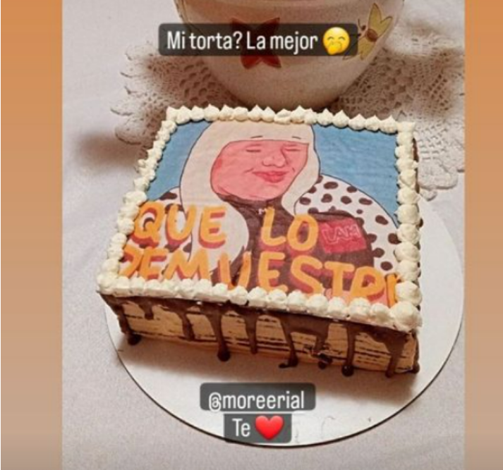 More Rial, se convirtió en el centro de atención de los medios luego de compartir en sus redes sociales una foto de la peculiar torta con su cara con la que una fanática se festejó su cumple.
