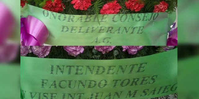 "INTENDENTE FACUNDO TORES Y VISE INT, JUAN M SAIEG" y "ONORABLE CONSEJO DELIVERANTE" decía textualmente la corona fúnebre. Cinco errores en apenas dos líneas, la mitad de las palabras con groseros errores ortográficos. Un familiar de Emi D’Ambra, la mujer que había muerto, compartió el error en Facebook y la imagen se viralizó.