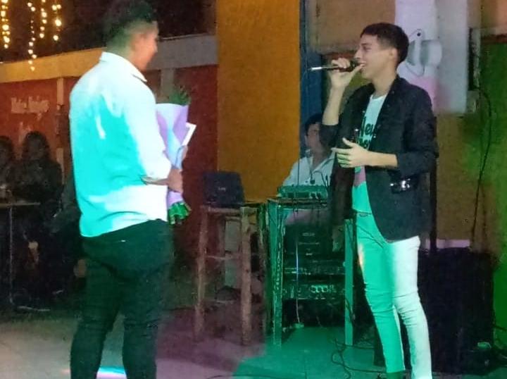 El hecho ocurrió en un bar de Rawson, el sábado por la noche y el video se volvió viral. Rodrigo (31) se animó a cortar la actuación de Elías (22) y además de declararle todo su amor, le pidió una reconciliación.
