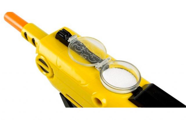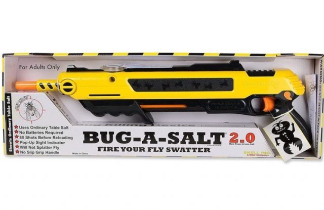 El motivo por el cual se llama Bug-A-Salt es porque la escopeta de plástico dispara pequeñas cantidades de cloruro de sodio hacia estos molestos insectos e instantáneamente los deja sin vida.