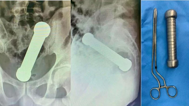 La víctima, de 54 años, se presentó en un hospital de la ciudad Manaos, noroeste de Brasil, con dolor abdominal, náuseas y dificultad para defecar. Le hicieron una radiografía que mostró que tenía un objeto de metal de 4,4 libras y casi 20 cm en el ano. Se calcula que la mancuerna estuvo alojada allí por lo menos dos días.