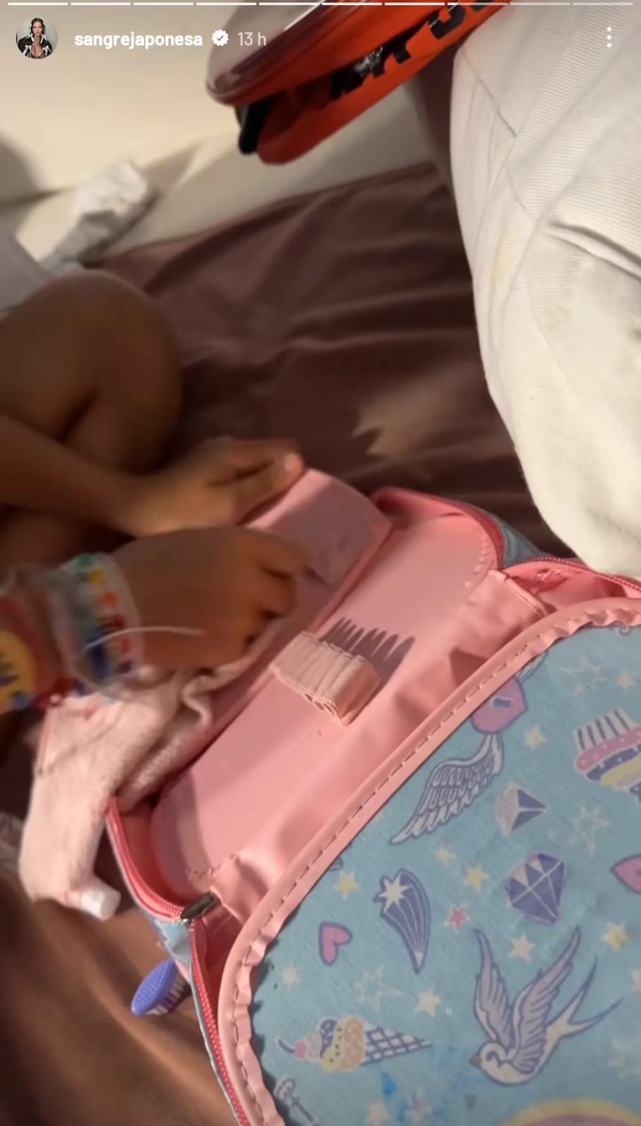 “Está limpiando su cartuchera del año pasado”, dijo la ex Casi Ángeles mientras grababa a la nena que tuvo con Nicolás Cabré. En la filmación, se la puede ver con un trapito sacando las manchas que había en el interior.