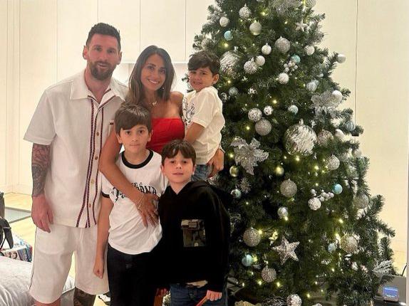 Lionel Messi fue uno de los que mostró parte de su Nochebuena. Además de publicar de madrugada un video en que se ve a su esposa Antonela Roccuzzo, de rojo y con una copa en la mano, bailar, el capitán de la albiceleste también posteó una foto de la pareja junto a los tres hijos al lado de un árbol de Navidad y escribió debajo: “Feliz Navidad”.