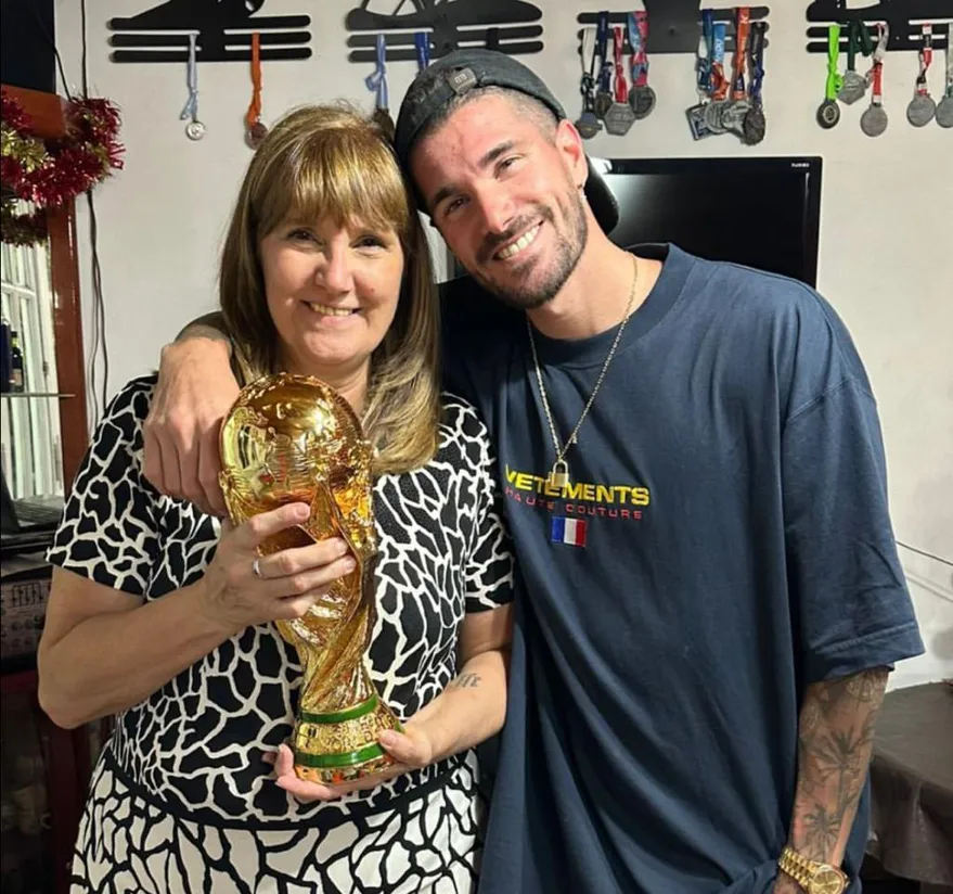 También Rodrigo de Paul, novio de la cantante Tini Stoessel, aprovechó el momento para mostrarse junto a su madre, con quien pasó Nochebuena, y dejarle un mensaje: “Con la que fabrica motores”, posteó y acompañó la frase con una imagen de los dos. Antes, había mostrado una réplica de la copa obtenida el domingo pasado en Qatar decorada con un gorro de Papá Noel.