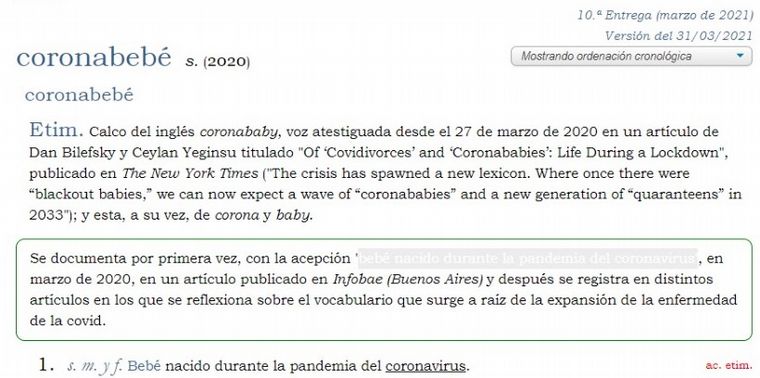 Teniendo en cuenta el contexto actual, el ente decidió adherir expresiones referidas a la pandemia, entre las que se destaca "covidiota", la cual refiere a la persona que se niega a cumplir con las normas sanitarias dictadas para evitar el contagio del virus.