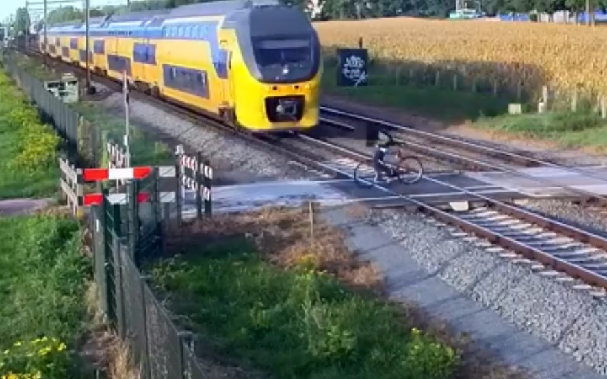 Un impactante video, compartido este 24 de noviembre por la empresa gestora de las líneas de ferrocarril holandesas ProRail, muestra a un ciclista de ese país cuando escapa de manera milagrosa de la muerte bajo las ruedes de un tren.