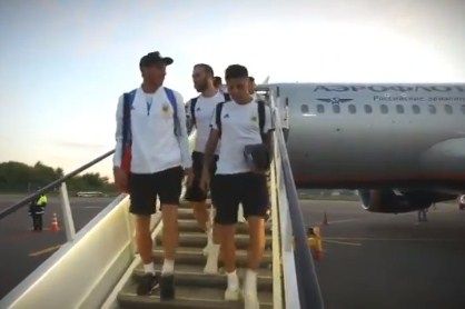 En las últimas horas se viralizó un video de los jugadores celebrando en el micro interno del aeropuerto de San Petersburgo, cantando al compás de uno de los nuevos hits de la Albiceleste. Con la melodía de "Imposible" de Callejeros, es uno de los favoritos de los hinchas que se acercaron a Rusia.