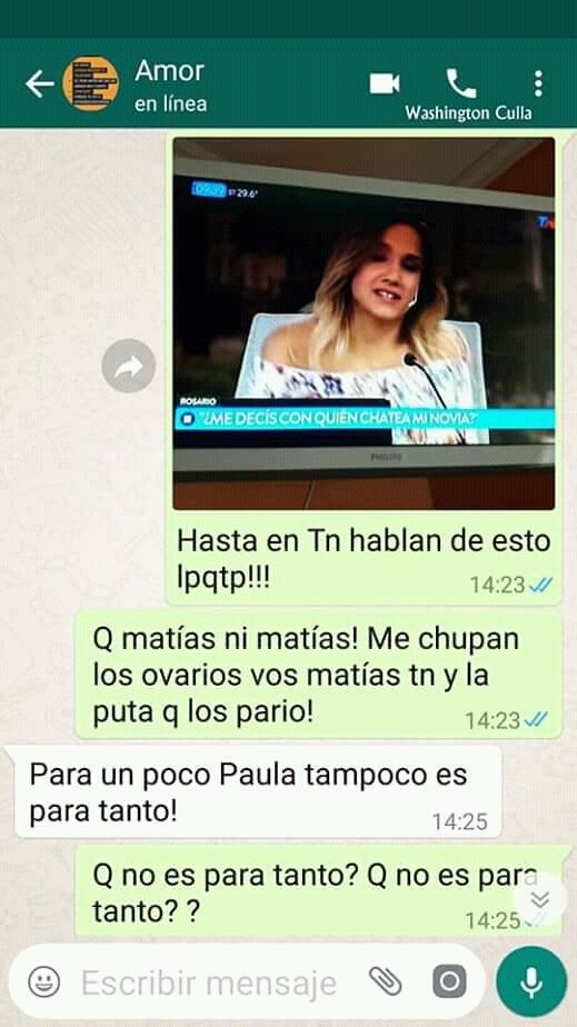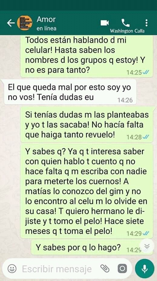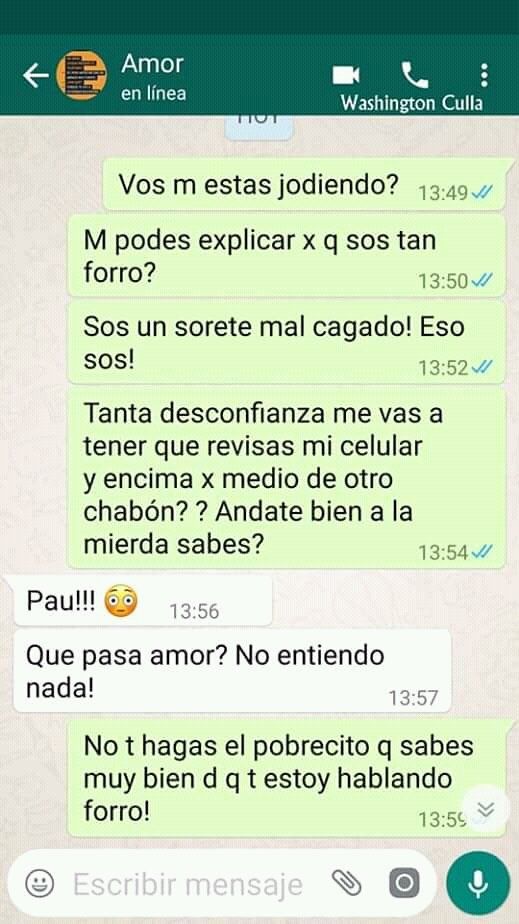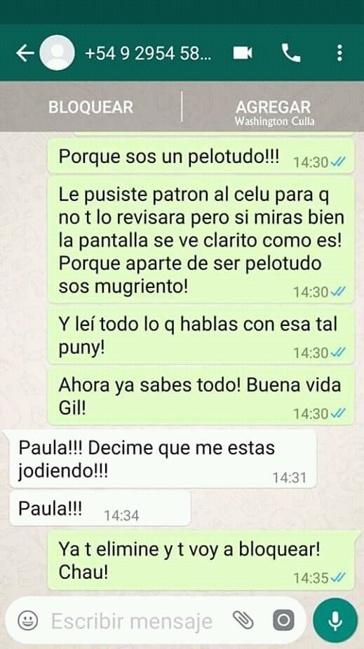 Ahora, parece que la novia se enteró lo que hizo el chico para saber con quién chatea y salió con los tapones de punta. ¡Agarrate Catalina! ¡Lo dejó!
