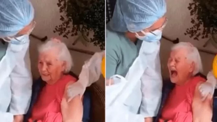En el video viral, que fue compartido por un periodista de Cali, se puede ver cómoa la mujer la asisten tres auxiliares, una de ellas le agarra el brazo para aplicarle la vacuna y, antes de recibir la inyección, la abuelita empieza a chillar muy fuerte y a lanzar insultos al aire.