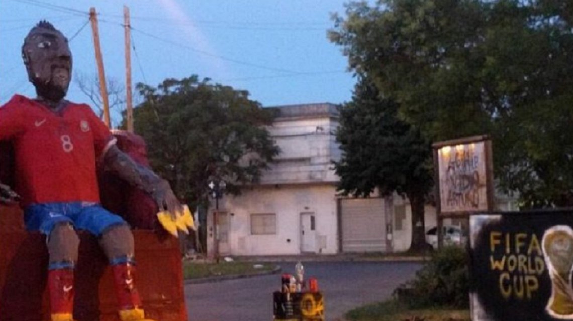 La imagen del delantero, representado con la camiseta roja número 8 del seleccionado de Chile y con una altura superior a los seis metros, fue prendida fuego en una esquina de la localidad bonaerense de Tolosa, a unos 50 kilómetros al sur de Buenos Aires.