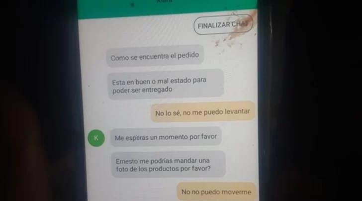 El incidente se conoció a partir del post de la periodista Yanina Otero, que publicó una captura del chat entre el repartidor y la base, junto a un relato en primera persona, como testigo del hecho, que se viralizó en Twitter.