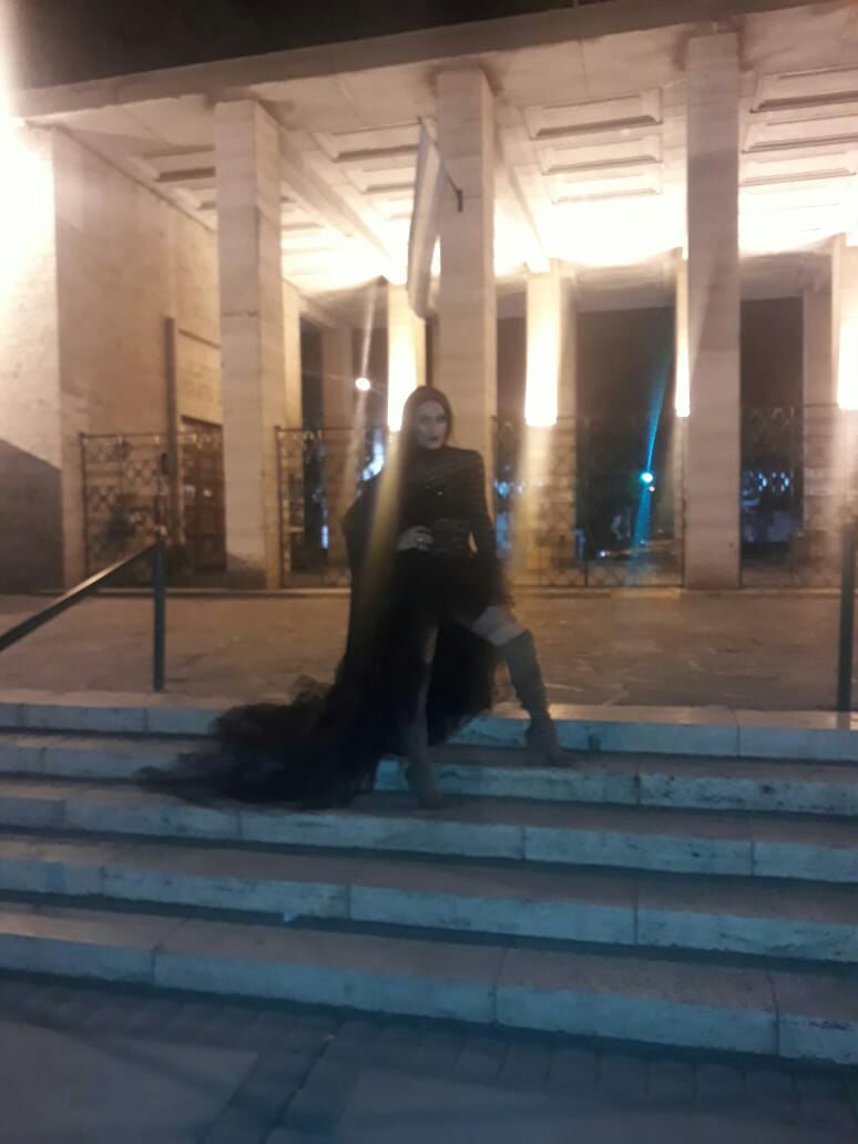 A simple vista, se trata de una jugada fotografía de la actual virreina nacional del Sol Gay en las escalinatas del Cementerio de la Capital. Pero no queda ahí, buceando en el fondo de la imagen aparece una silueta que pone los pelos de punta.