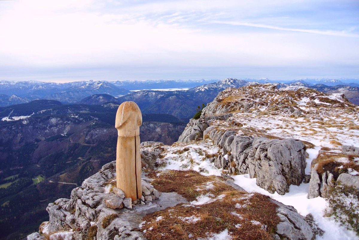 Una llamativa escultura sorprendió el jueves pasado a la montañista y bloguera Marika Roth, en la cumbre de la montaña Ötscher, en los Alpes austríacos: se trata de una figura de manera con forma de pene gigante.