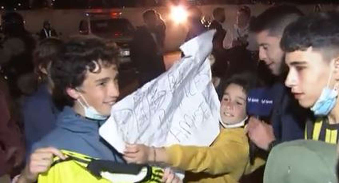 Rápidamente, un cronista de TyC se acercó a hablar con el niño para que detallara su experiencia y allí le hizo una insólita confesión: "El cartel no es mío, lo encontré tirado y me lo quedé por si venían los jugadores".