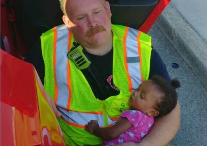 Cuando la puso de pie, ella comenzó a calmarse. El bombero la miró rápidamente para asegurarse de que no estaba herida. La pequeña apoyó su cabeza en su hombro. "Simplemente me abrazó", explica él, que tiene cuatro hijas pequeñas.