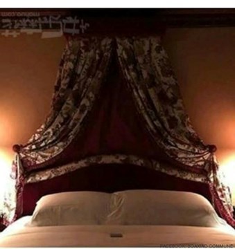 Para revelar qué es realmente lo representado en la fotografía, hay que girar la cabeza y observarla al revés.Ahí sí, se puede ver con facilidad, que se trata de un dormitorio, en el que se ve una cama grande.