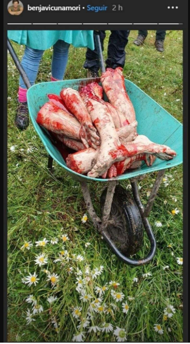 El actor publicó una carretilla con restos humanos llenos de sangre que reflejarán una época de guerra en la serie ya mencionada. Vale aclarar que los elementos son parte de utilería.