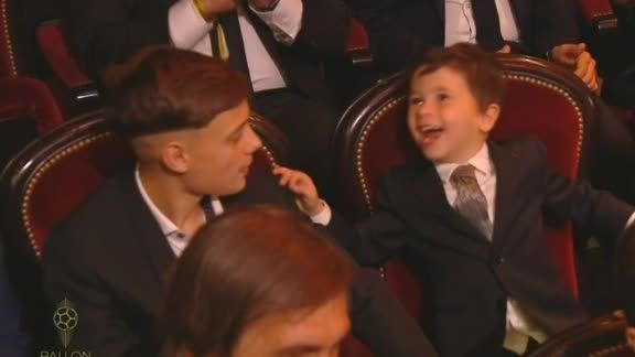 Cuando se anunció a Lionel Messi como ganador del Balón de Oro por sexta vez en su carrera, sus hijos mayores celebraron con euforia la conquista del capitán y gran figura del Barcelona. Mientras Antonella Roccuzzo, su esposa, sonreía en su asiento, Mateo no dudó en arrojarse encima de Thiago, y al parecer gritó muy fuerte en el oído de su hermano; un desborde que fue captado por las cámaras de la transmisión televisiva. Y otra travesura más de Mateo, que suele hacer de las suyas en cada aparición pública.