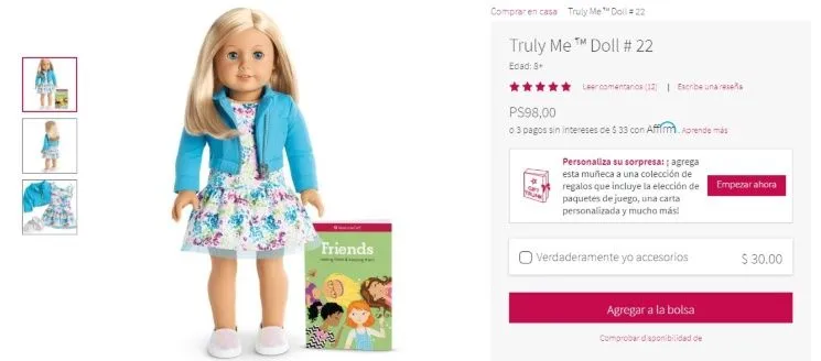 Entre los escaparates, Luli encontró una muñeca idéntica a Matilda y no se demoró en comprarla y lo anunció a través de las redes sociales. El juguete también está publicado en la página de internet de la tienda y registra un precio de 98 dólares, en la moneda argentina se traduce a unos 7.545 pesos.