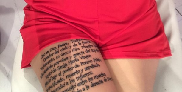 A través de las redes sociales, la ex de Fede Bal mostró su pierna con el Credo Católico sellado en su piel.