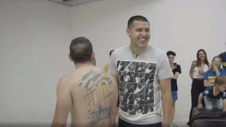 El video que fue compartido por la cuenta de Instagram todosobreroman10 y tuvo amplia repercusión contó con un final muy emotivo. Sin que los presentes supieran de su presencia, Juan Román Riquelme irrumpió en escena y saludó uno por uno a sus fieles fanáticos. No conforme con ello, les regaló su firma tatuada.