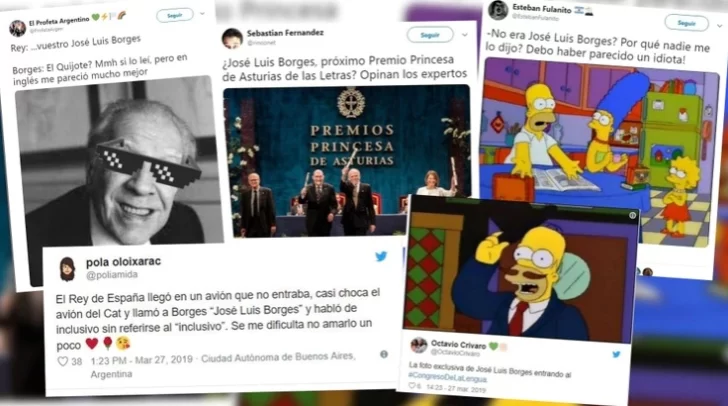 El monarca citó a uno de los grandes referentes de la literatura argentina, pero no estuvo muy atinado: "Vuestro José Luis Borges dejó escrito que el idioma no es sólo un instrumento de comunicación sino una tradición y un destino".