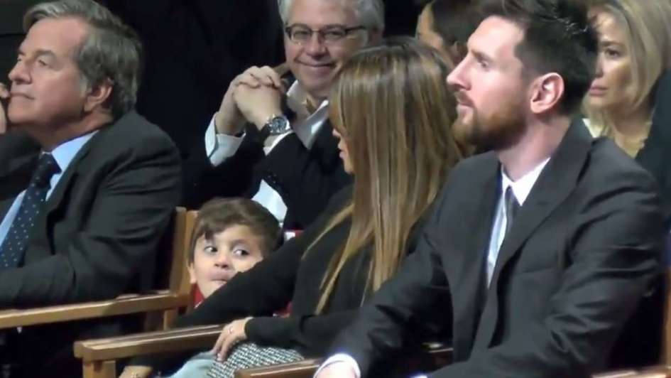 Mientras el argentino prestaba atención al acto, su hijo Thiago no pudo controlar su atención más de cinco minutos, como todo niño. Y Luis Suárez se encargó de entretenerlo por un rato con caras de complicidad y lenguas afuera, para que el pequeño Messi no se aburriera.