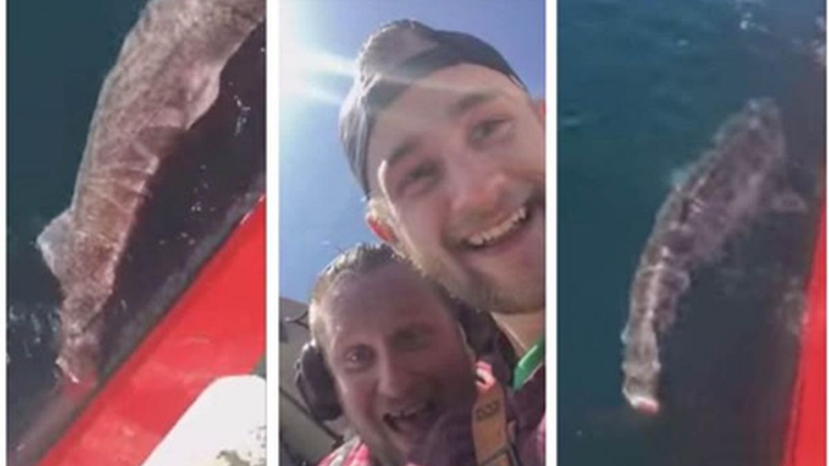 En el video se escucha a los hombres burlarse: "Buena suerte cuando intentes nadar, bastardo". Mientras tanto, el tiburón se aleja lentamente de la embarcación, donde ambos continúan riendo.