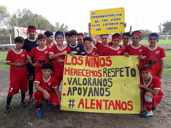 Un equipo de nenes de fútbol infantil salió a la cancha con carteles pidiendo a sus propios padres que los respeten cuando están jugando y no insulten a sus compañeros o rivales.