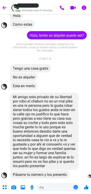 Uno de los tantos detalles curiosos de la conversación fue que el encargado de responder fue un amigo del dueño de la casa. Todo comenzó con una simple pregunta: "Hola, tenés un alquiler pueder ser?".