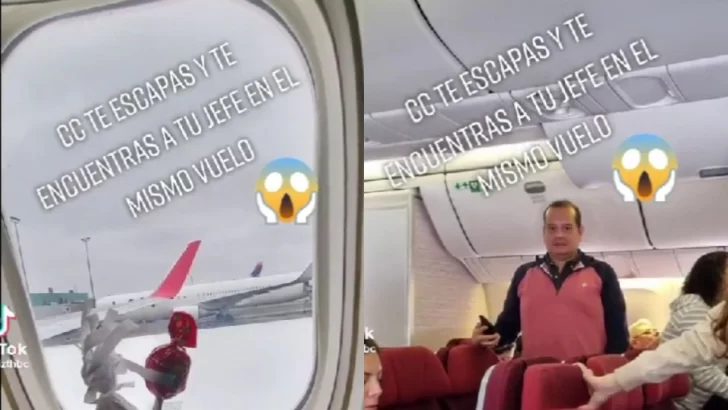 La protagonista de la historia es la usuaria de Tik Tok @klizthbc, quien relató el episodio en la misma red social. No solo tomó el mismo vuelo que su superior, sino también que los asientos estaban a poca distancia.