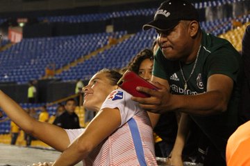 Al finalizar el encuentro amistoso ante Tigres Femenil y Houston Dash, la jugadora del elenco estadounidense Sofía Huerta, se acercó a los hinchas a sacarse una foto y vivió un desagradable momento.