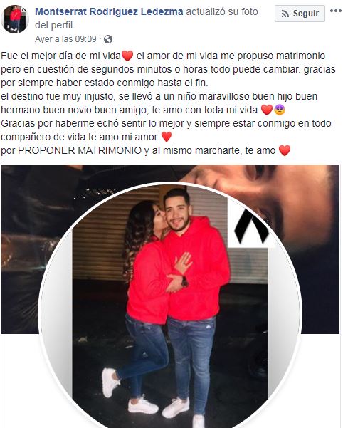 Lo sorprendente es que muchos dudaron del relato de la mujer que ella compartió a través de su red social Facebook. Debido a eso su hermana escribió: “Qué coraje e impotencia me da al leer los comentarios tan estúpidos de que mi hermana inventó la muerte de su novio. No sé en qué cabeza cabe que esto es una broma. Si no saben, no opinen”.