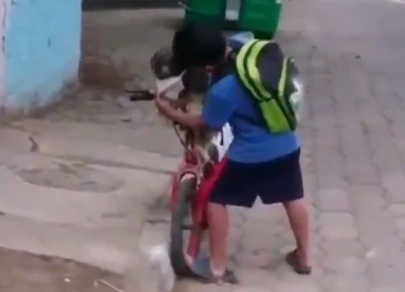 Su vecino Joselo Sánchez subió a las redes sociales el tierno video del momento en el que el niño prepara a su perrito. Allí, se ve a la mascota de Anthony arriba de la bicicleta muy quieto y listo para acompañar a su dueño.