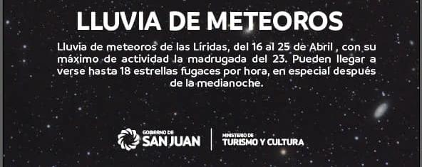 Este fenómeno se dará hasta el 29 del mismo mes. Desde la tarde del 21 de abril hasta el amanecer del 22 de abril, o desde la tarde del 22 de abril hasta el amanecer del 23 de abril. El pico previsto es el 23 de abril, cuando tendrá su periodo de mayor esplendor.