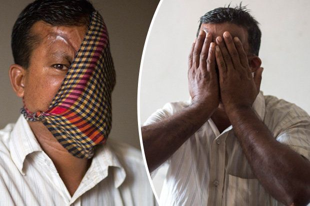 Padre de tres hijos, Hashmot se refugió en su pueblo y apenas sale de su precaria vivienda. No quiere ser juzgado por las heridas que surcan su rostro. Prefiere ocultar su cara de los demás con pañuelos que la atraviesan en diagonal. Solo puede verse su ojo derecho.