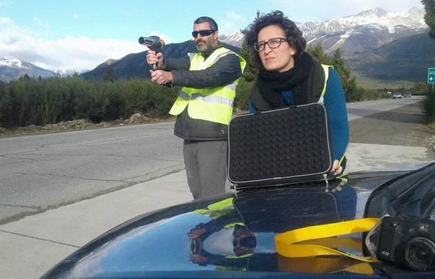 Usando chalecos reflectantes, apuntaban con sus secadores (que tienen un aspecto muy similar a las que se usan en los controles viales) a los conductores que circulaban por la ruta 82, en la ciudad de Bariloche. Y de inmediato, pudieron comprobar que casi todos reducían la velocidad.