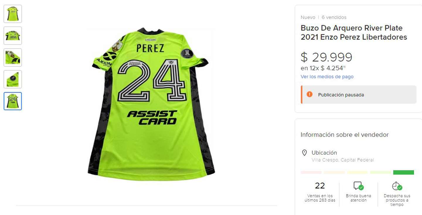 Ni bien finalizó el encuentro copero, un usuario de Mercado Libre vendió 30 camisetas originales con el estampado de “Pérez” y el número “34″, cada una por la suma de 30 mil pesos. Minutos más tarde, la publicación apareció pausada debido a que se quedó sin stock.