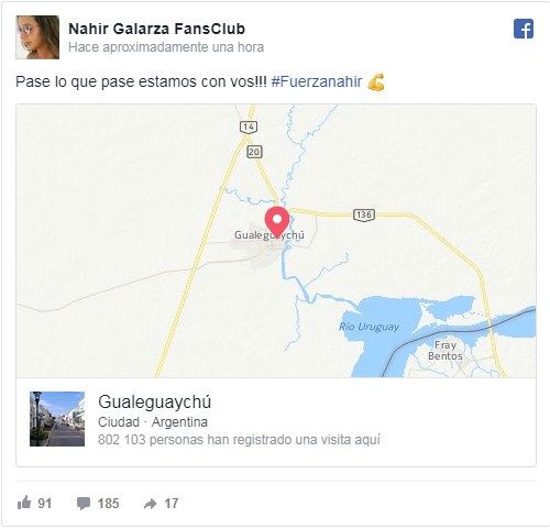 "Pase lo que pase estamos con vos!!! #Fuerzanahir", publicaron en “Nahir Galarza FansClub” apenas se conoció la decisión judicial.