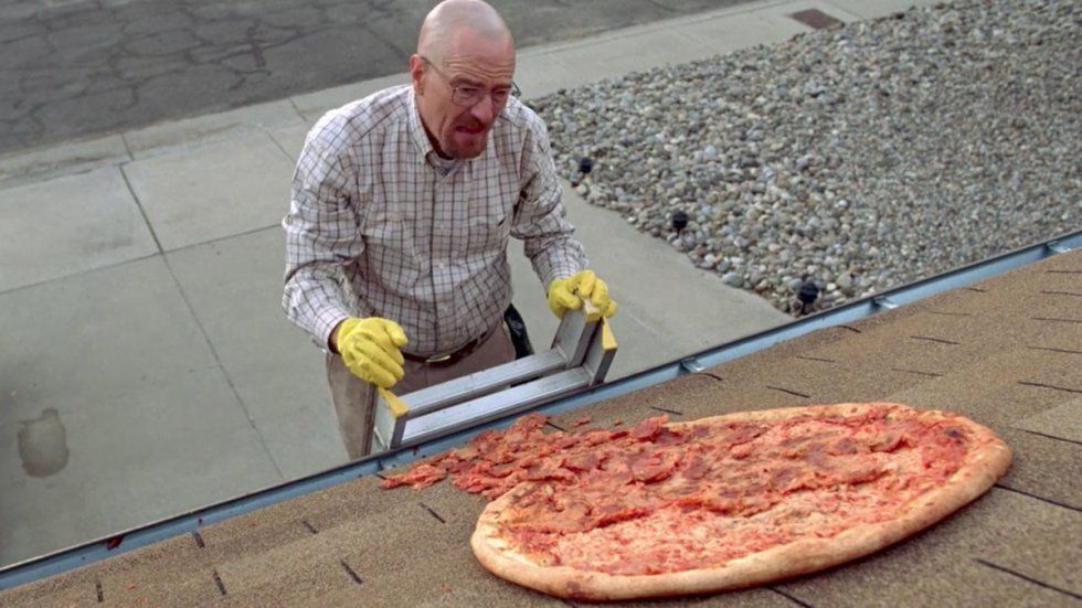 Una de las escenas más icónicas de la serie es el lanzamiento de pizza en pleno ataque de ir de Walter, colocando la pizza en el tejado de su casa. Aunque pueda parecer algo complicado de lograr, milagrosamente Cranston logró hacerlo a la primera, por lo que esta escena se grabó en una sola toma. Ni trucos de edición ni repeticiones. Tal cual a la primera. Tan emblemática es esta escena que la familia que vive en la realidad en la casa que la serie usa como residencia de Walter y Skyler tuvo que poner una valla hartos de que los fans se acercaran a replicar el lanzamiento de pizza.