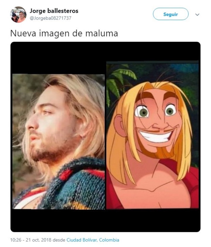 "Nueva imagen de Maluma", escribió un fanático del cantautor nacido en Medellín junto a la foto de su ídolo al lado de un personaje de Disney.