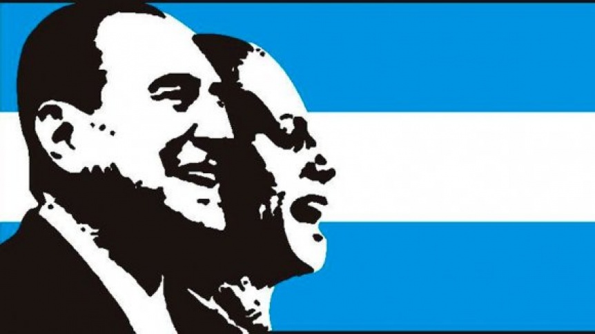El dibujo elegido para deshacerse del recuerdo de su ex, es una imagen representativa del Partido Justicialista, dónde se lo puede ver al ex Presidente acompañado de su esposa, Eva Duarte.