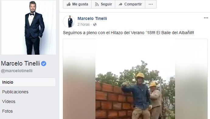 “Seguimos a pleno con el Hitazo del Verano ´18!!! El Baile del Albañil!!”, escribió el conductor en su cuenta de Facebook este lunes, junto al video que en sólo 2 horas fue reproducido más de 43.000 veces en la publicación.
