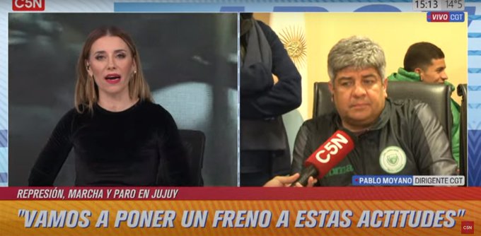 Durante uno de los días más violentos desde la aprobación de la reforma de la Constitución en Jujuy, con movilizaciones, cortes de ruta y enfrentamientos en la legislatura local, desde la Confederación General del Trabajo se debatió la posibilidad de convocar a un paro nacional. Como en todos los programas de actualidad, en Argenzuela (C5N) trataban los hechos ocurridos en la provincia norteña y a través de un móvil a Pablo Moyano, analizaban los pasos a seguir en la central obrera.