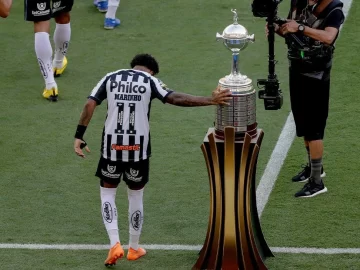 Marinho, delantero de Santos, rompió con las costumbres y tocó el trofeo de la Copa Libertadores de América antes de la final ante Palmeiras, este sábado en el Maracaná de Río de Janeiro.