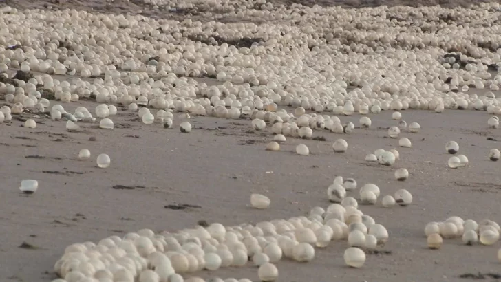 Se trató finalmente de una gran cantidad de huevos de gasterópodo de aspecto nacarado que llegaron hasta la orilla, siendo los protagonistas de todas las fotos.